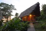Calanoa eco-lodge is in the heart of the Amazon jungle, between the Amacayacu Natural Park and the island of Mocagua, with access by boat from Leticia. It is a natural reserve with diversity in fauna and flora and the lodge is characterised by its sustainable architecture of wood and woven palm. The communal area has a central screened tent with a dining table and view of the river, and there are hammock swings and seats around it. A wooden deck connects with the kitchen pavilion, where guests are invited to participate in the preparation of food.