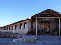 Just on the edge of the Uyuni salt flats and 7km from Colchani. The main structure of the hotel is built entirely from blocks of salt, but the roof is thatched and the corridors have salt gravel too.