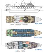 24 spacious cabins with private bathrooms including 4 triple cabins and 4 connecting cabins, ideal for families.