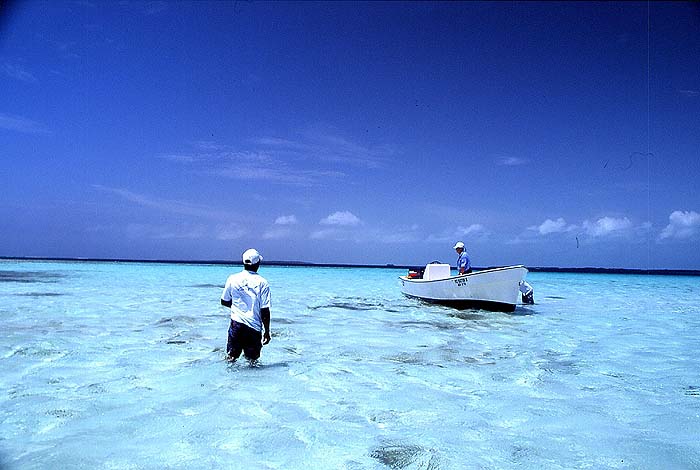 Bonefishing | Boat and crystal-clear water. | Los Roques (