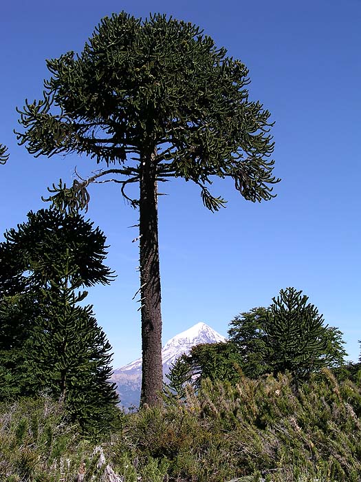 Lanín volcano | Monkey puzzles with Lanín volcano in the background. | San Martin de los Andes (