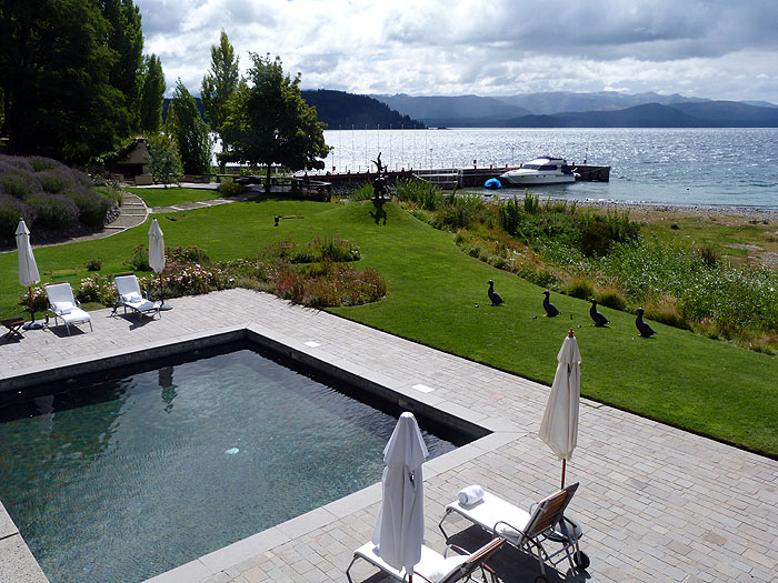El Casco Art Hotel | Swimming pool and lake. | Bariloche and Villa la Angostura (Argentina)